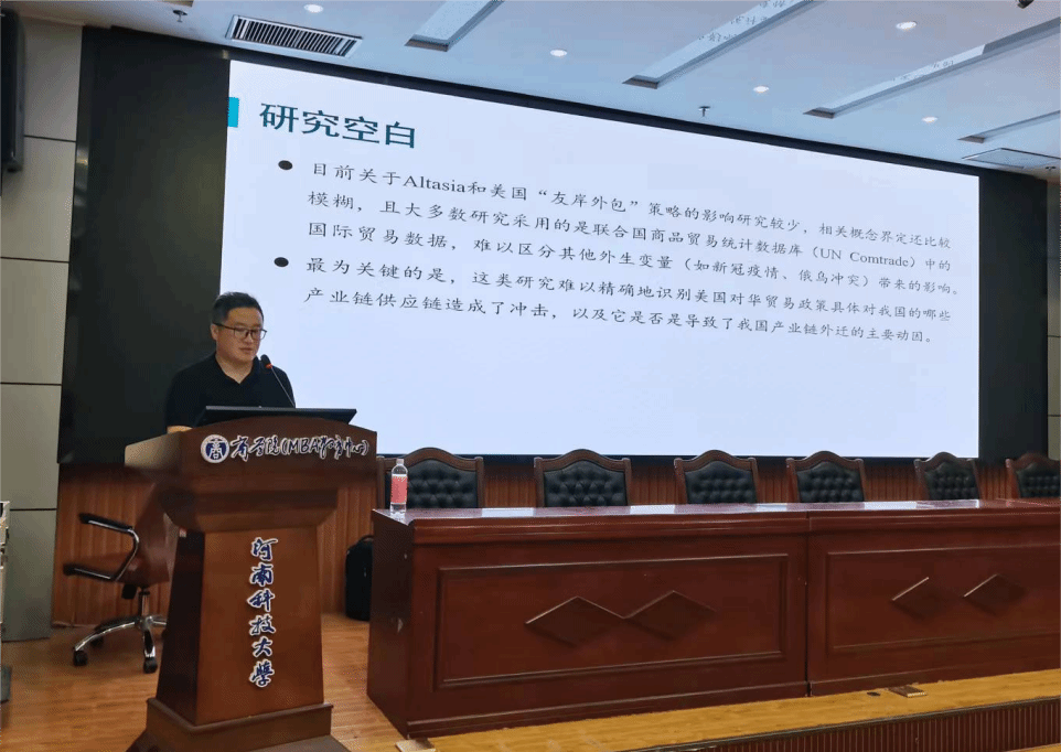 校新闻中心讯 近日,北京工业大学副研究员、博士生导师邢李志应邀在文1-S105为威尼斯官网师生作题为《阿尔塔西亚对于我国产业链供应链的替代效应》的学术报告。报告会由商学院副院长温芳芳主持。